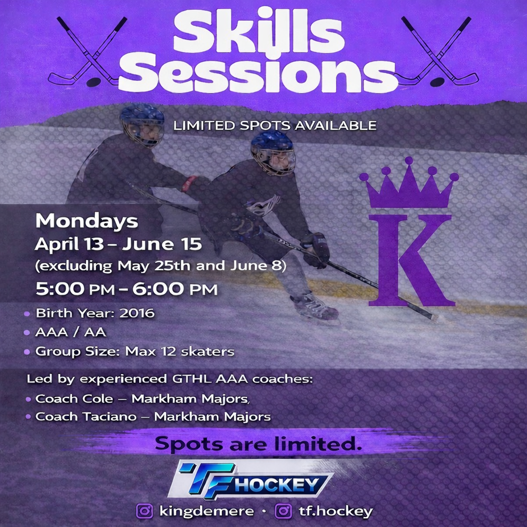 Built for players who are ready to put in the work and level up. Mondays, 10-Week Program at King City. Max 12 skaters with a 1:6 coach-to-player ratio. High-tempo and skill-focused development